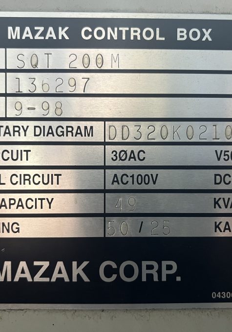Mazak, tour CNC, SQT 200M 1998, usagé – 320119